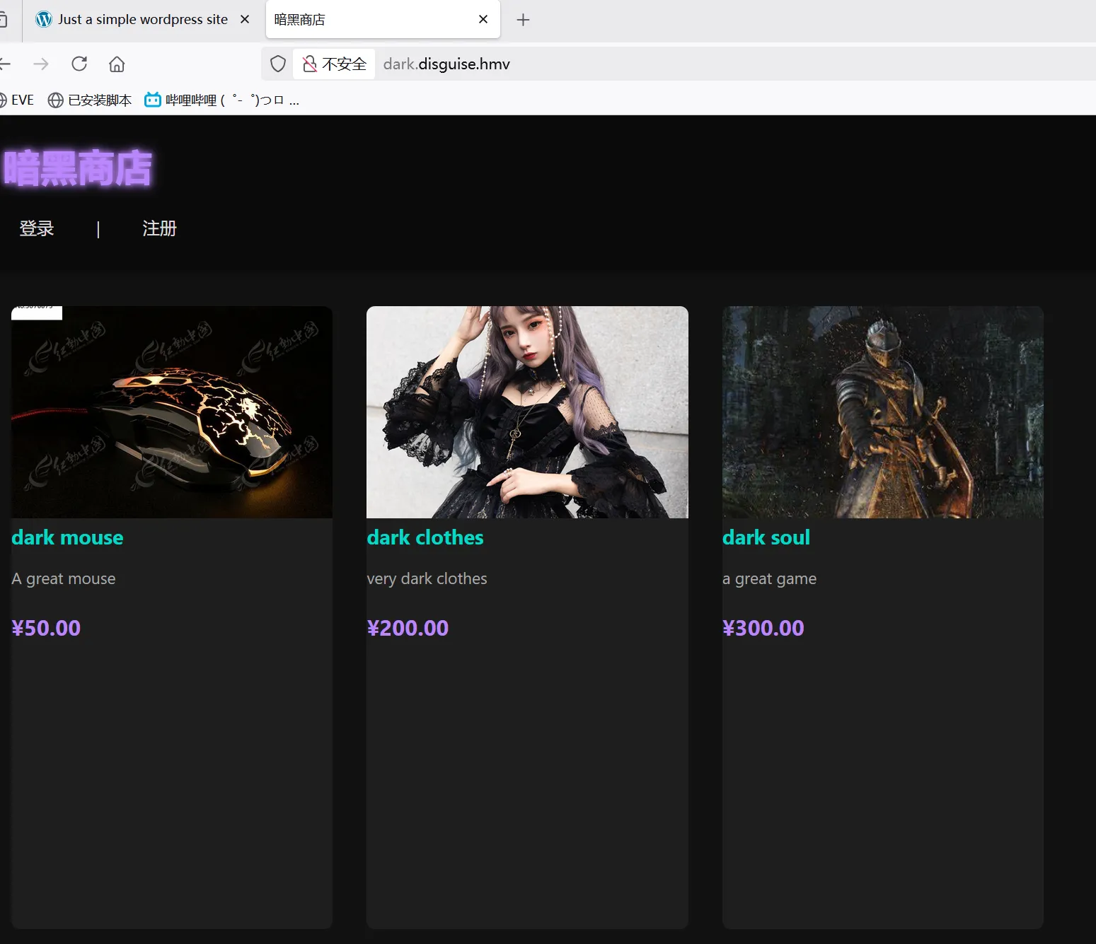 192.168.205.211 http://disguise.hmv配置完成后,通过域名 http://disguise.hmv 访问站点。观察页面页脚信息,初步判断该站点是基于WordPress构建的。